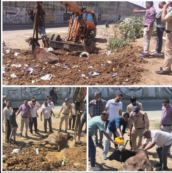 View Allज्वालापुर: लालपुल के पास गोबर के ढेर में फंसी गाय, हिंदू क्रांति दल संगठन व पुलिस की तत्परता से बची जान