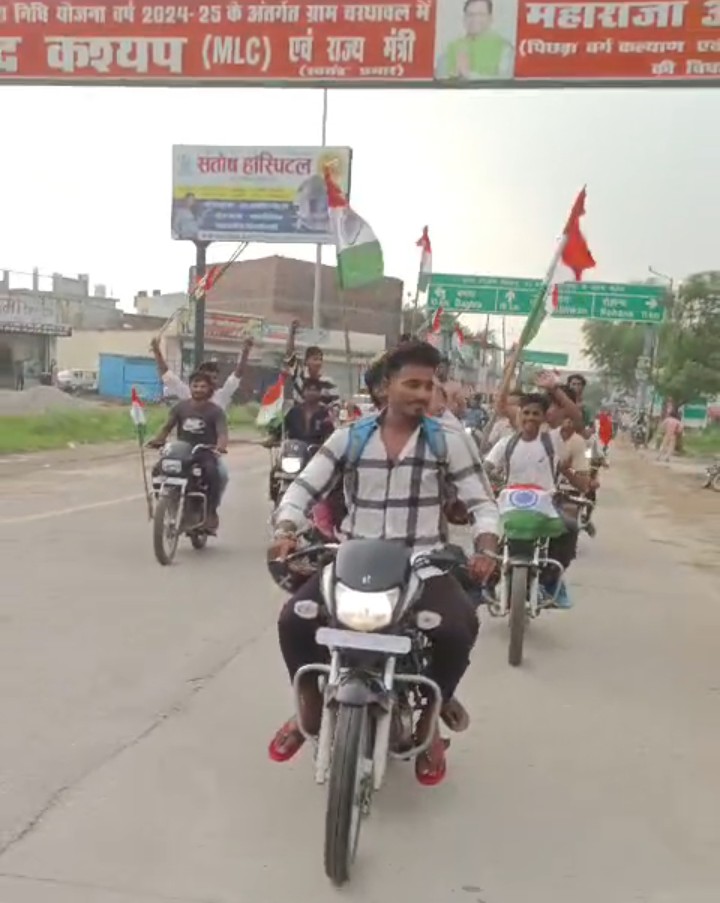 चरथावल क्षेत्र के ग्राम नगला राई निवासी भाजपा युवा मोर्चा मंडल अध्यक्ष एवं शिवशक्ति धाम नगला राई के अध्यक्ष सचिन धीमान के नेतृत्व में 15 अगस्त के उपलक्ष्य पर भव्य बाईक तिरंगा यात्रा का आयोजन किया गया।