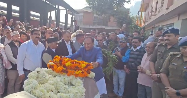 मुख्यमंत्री की ओर से जिलाधिकारी मयूर दीक्षित एवं वरिष्ठ पुलिस अधीक्षक प्रमेंद्र सिंह डोभाल ने दिवंगत नेता के पार्थिव शरीर पर पुष्पचक्र अर्पित कर अंतिम श्रद्धांजलि दी। इस दौरान पुलिस दल द्वारा गार्ड ऑफ ऑनर दिया गया और अंतिम सलामी के साथ उन्हें नम आंखों से विदाई दी गई।