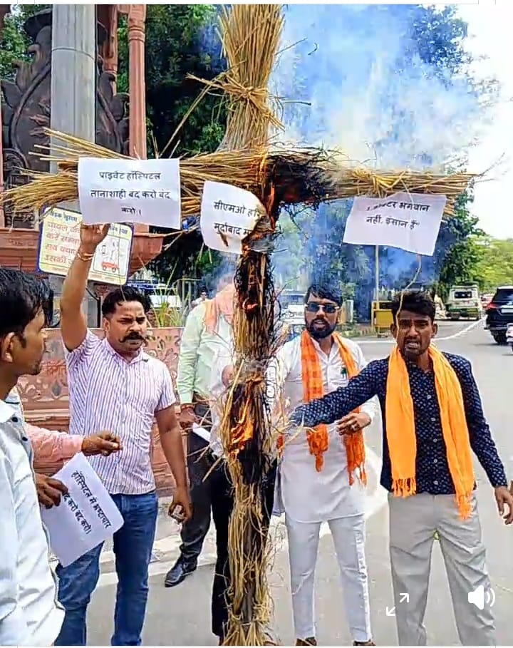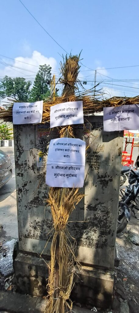 हरिद्वार में भैरव सेना का प्रदर्शन मुख्य चिकित्सा अधिकारी का पुतला दहन राज्यपाल को ज्ञापन सौंपा